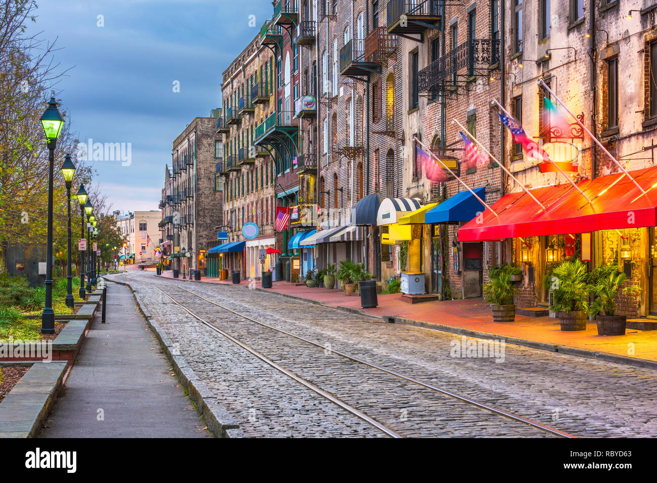 Savannah Georgia Usa Bars Und Restaurants Auf Der River Street In Der Dammerung Stockfotografie Alamy